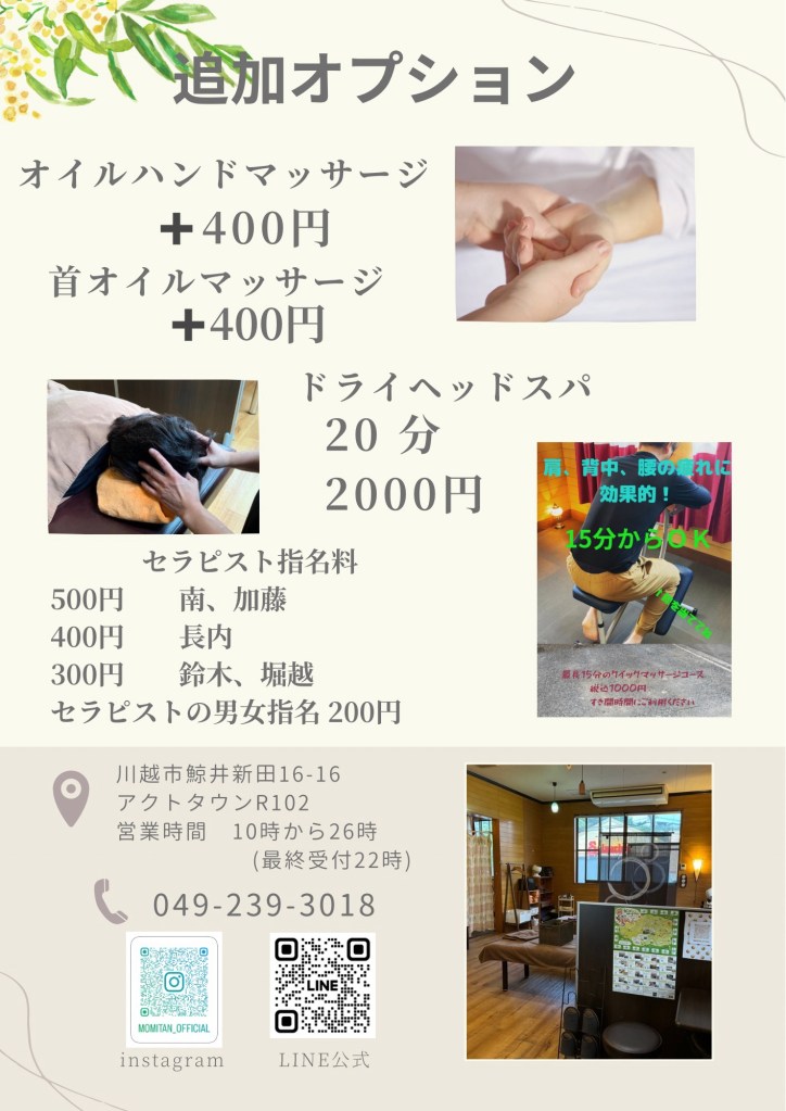 ハンドオイルマッサージ、首のオイルマッサージ プラス400円