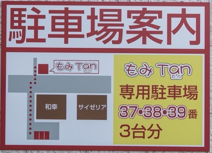 店舗前の砂利の駐車場に停める方が非常に多いですが、もみTanで契約しているのは店名の入った目印を置いてある1台分のスペースのみです。