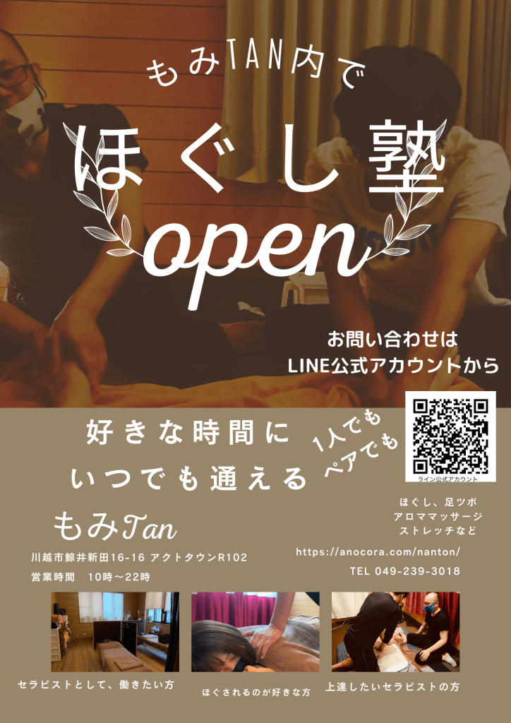 全くの初心者から、セラピストを目指す方にも、ある程度経験のあるセラピストのスキルアップにも対応出来るように臨機応変に内容を変えていこうと思ってます。